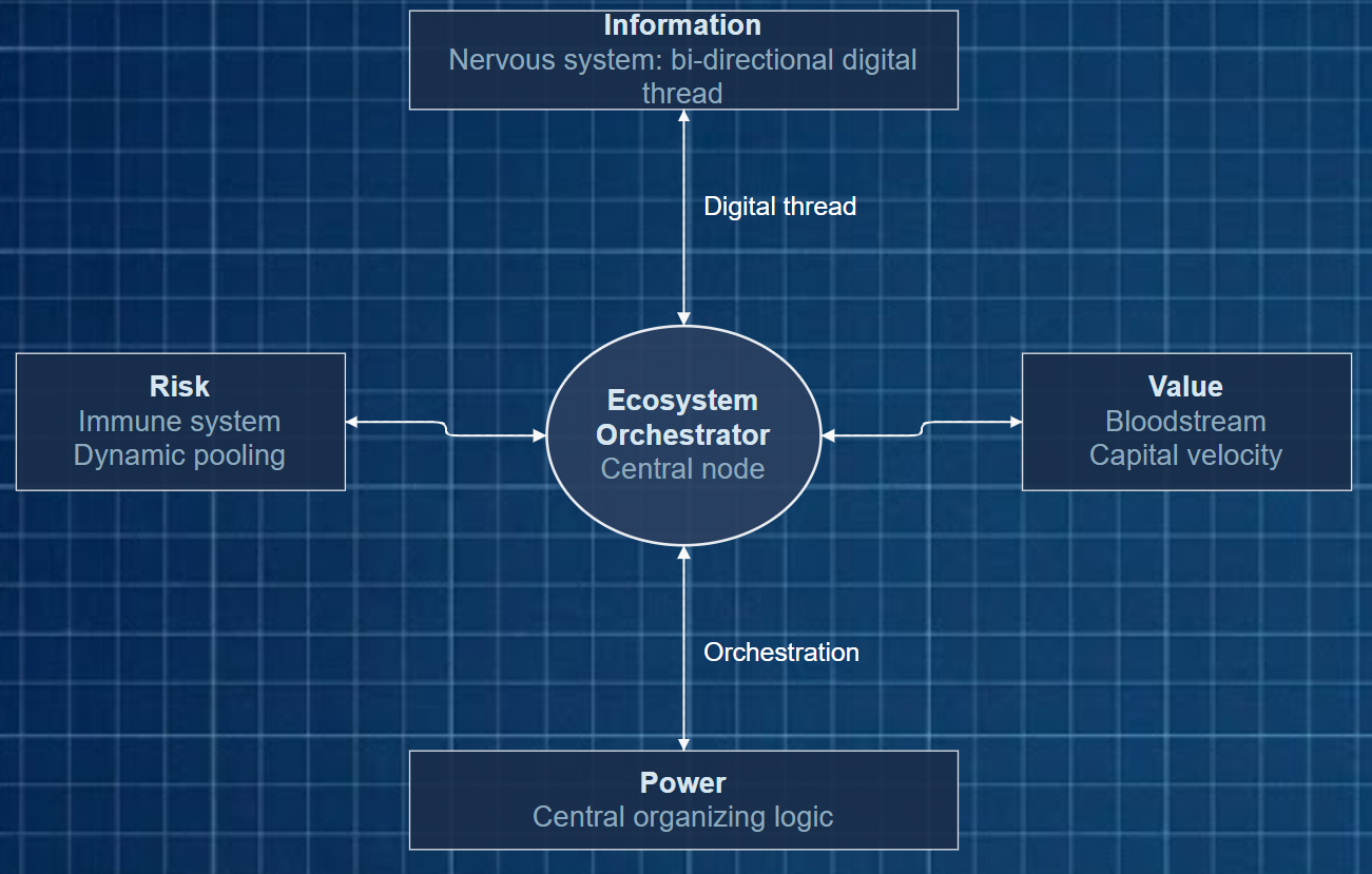 An effective operating model for any asymmetric network treats Information as its nervous system, Risk as its immune system, Value as its bloodstream, and Power as its central organizing logic.